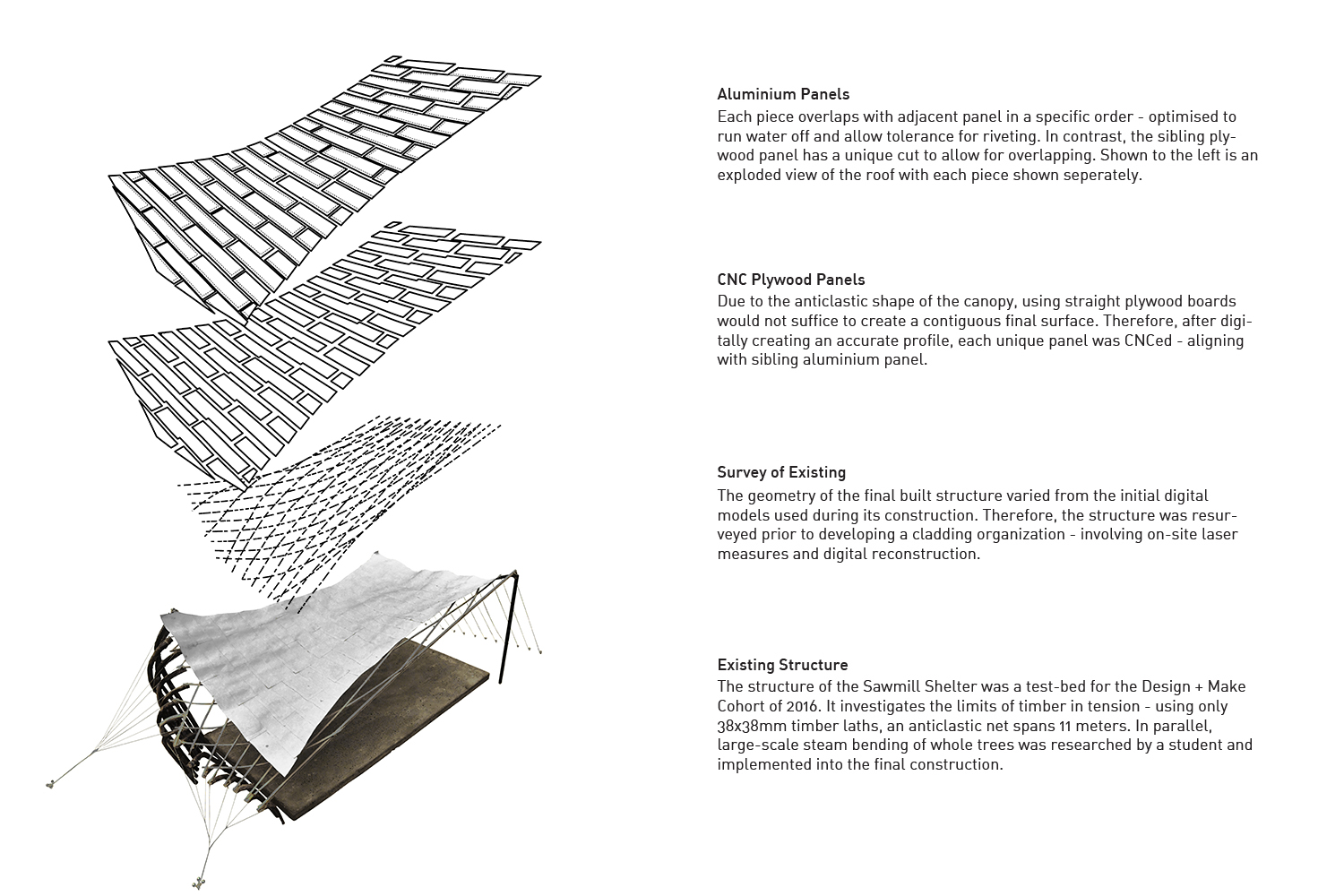 ![]() Exploded axonometric of project phases and materials, 2017 (Drawing by author) |