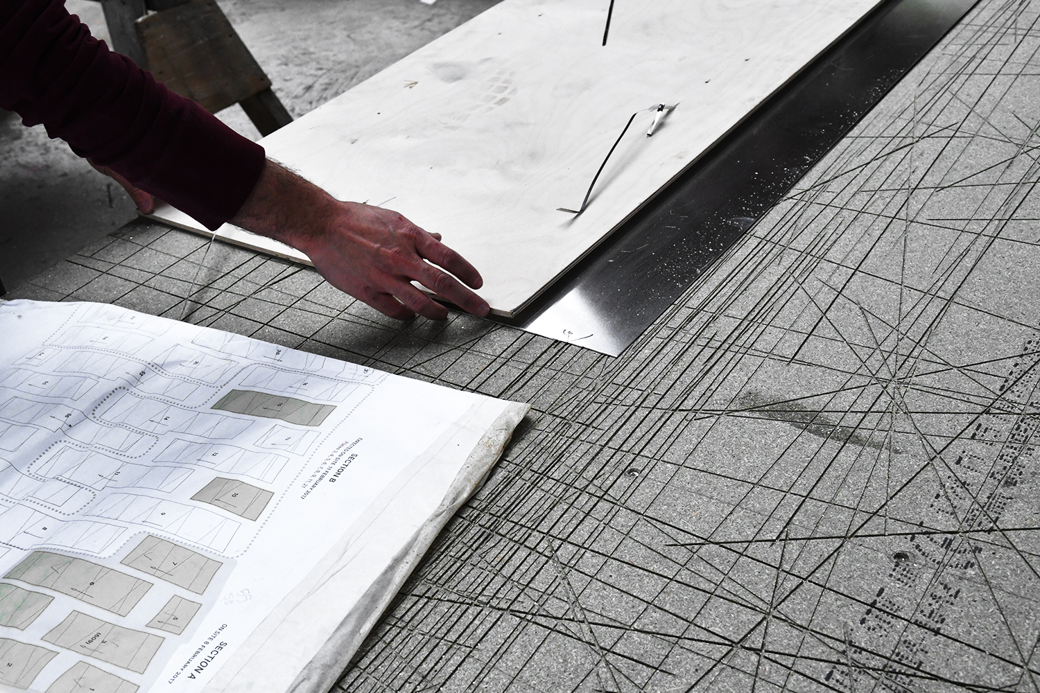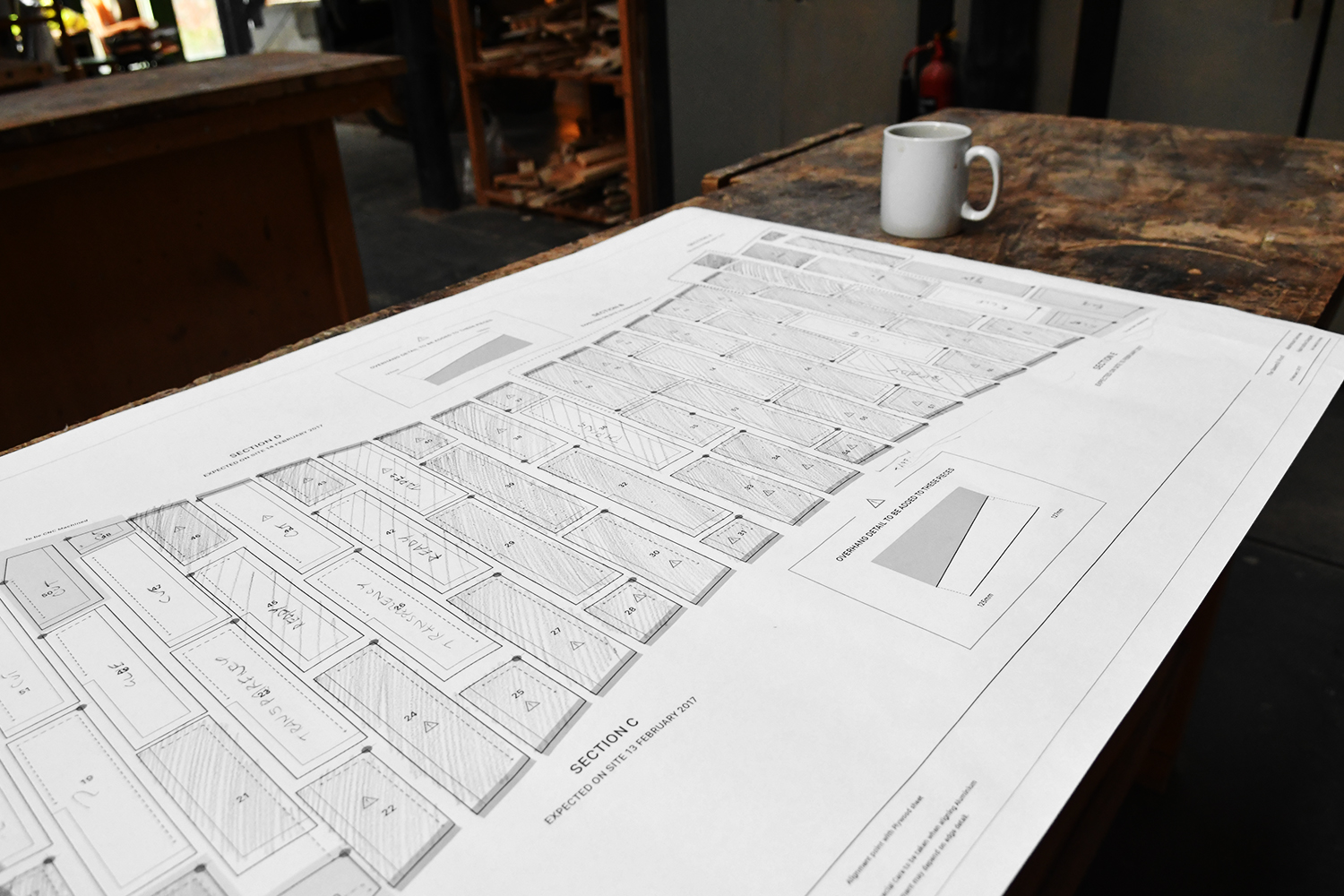 ![]() Assembly plan specifying tile sequencing, location, and overlap position, 2017 (Photo by author) |