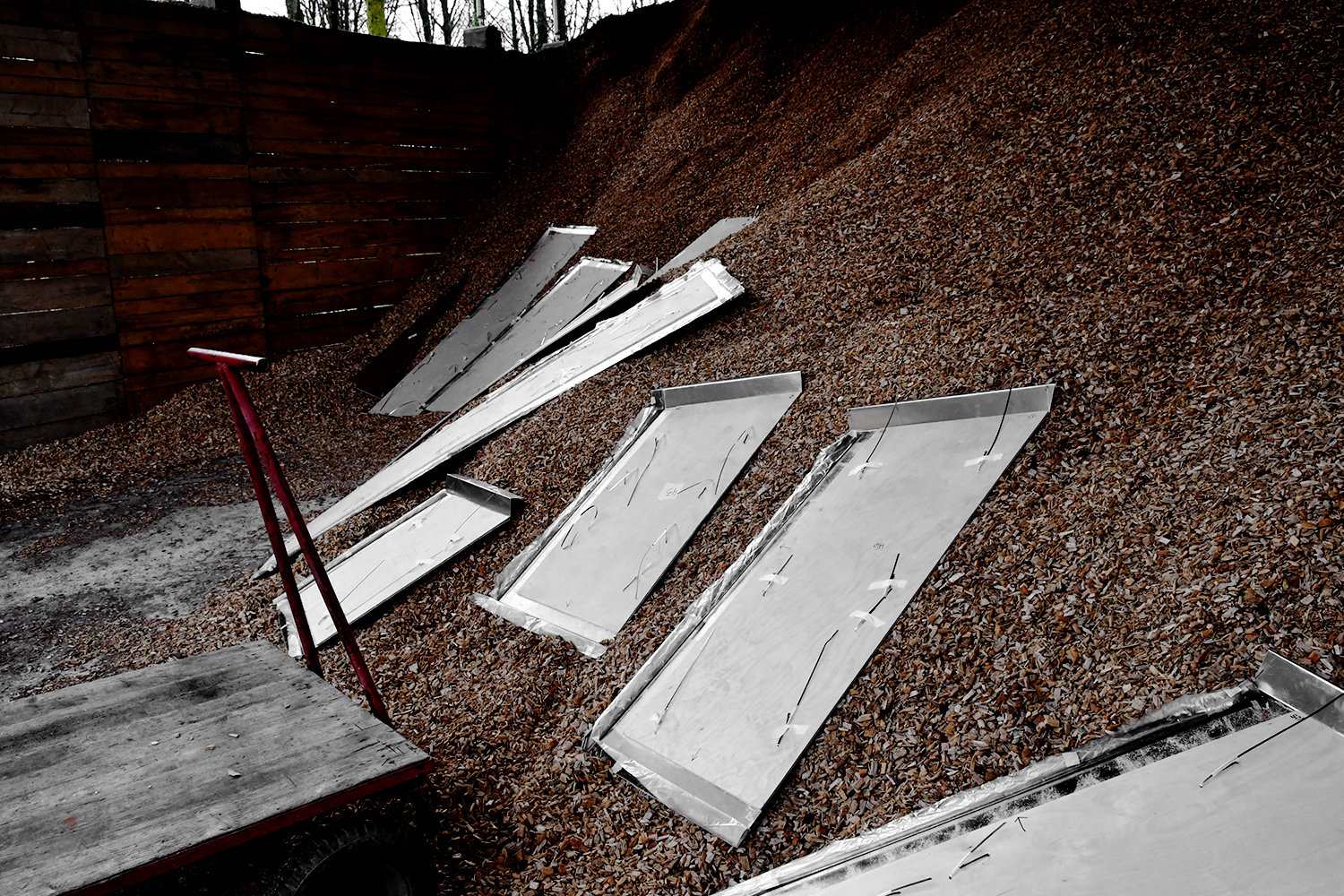 ![]() Prefabricated roof tiles waiting for installation, 2017 (Photo by author) |