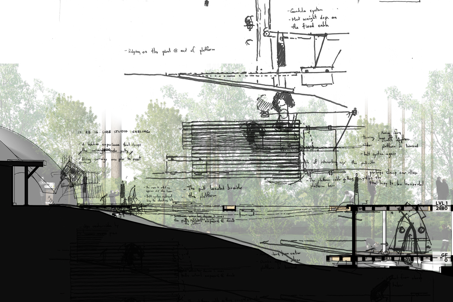 ![]() Composite of concept and study sketches, 2016 (Drawing by author) |