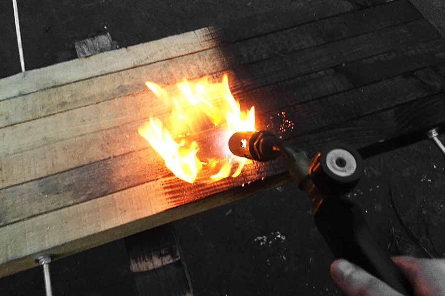 ![]() Wood charring prototype, 2016 (Photo by author) |