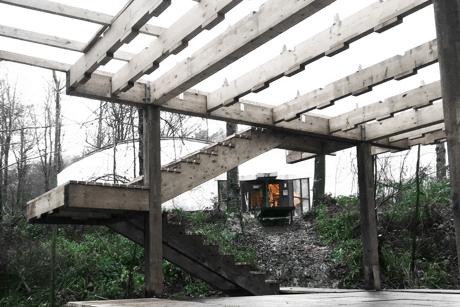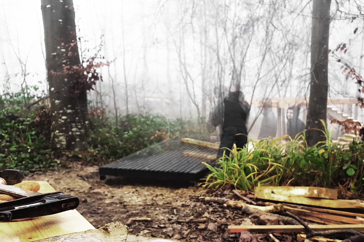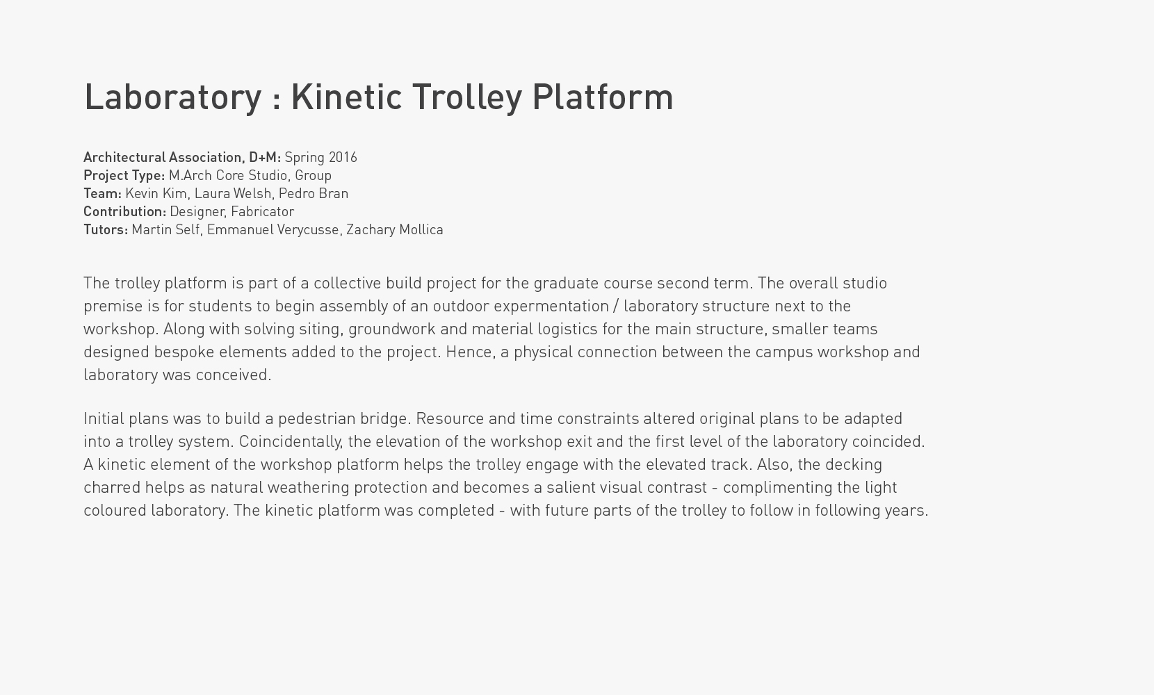 ![]() Platform prefabrication in workshop, 2016 (Photos by Laura Welsh) |