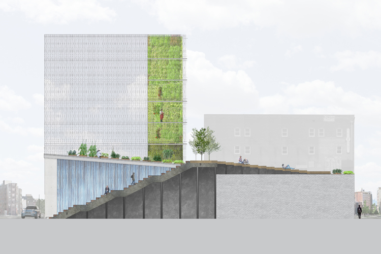 ![]() Day view rendering of stair access on 126th street, 2011 (Rendering by author) |